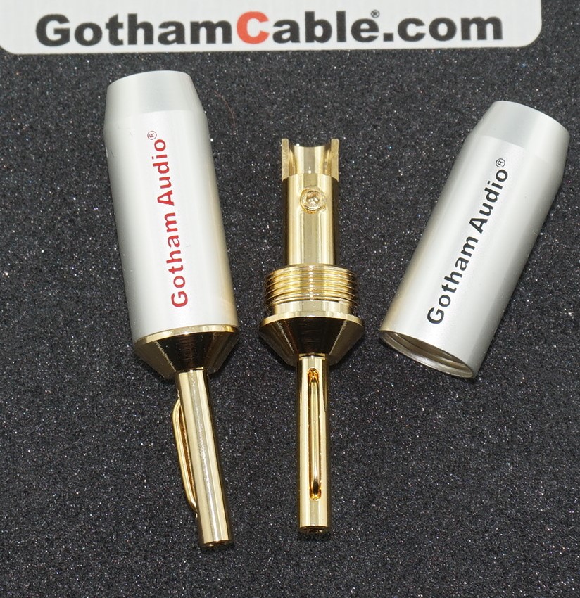 | GCBAN1RED | GC Banane Plug red logo Gold plated contacts, Dicast handles red/black color coded. Solder and/or screw mount 4.0mm gold contact fits wire up to 6.00 mm² copper (50260) |