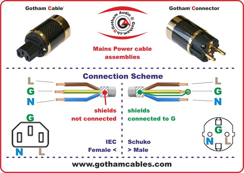 Top quality Gotham Gold plated Carbon Mains Power Connectors.They are specially made for Gotham Audio and fit also the new range of larger diameter Mu-Metal shielded cables 85455.