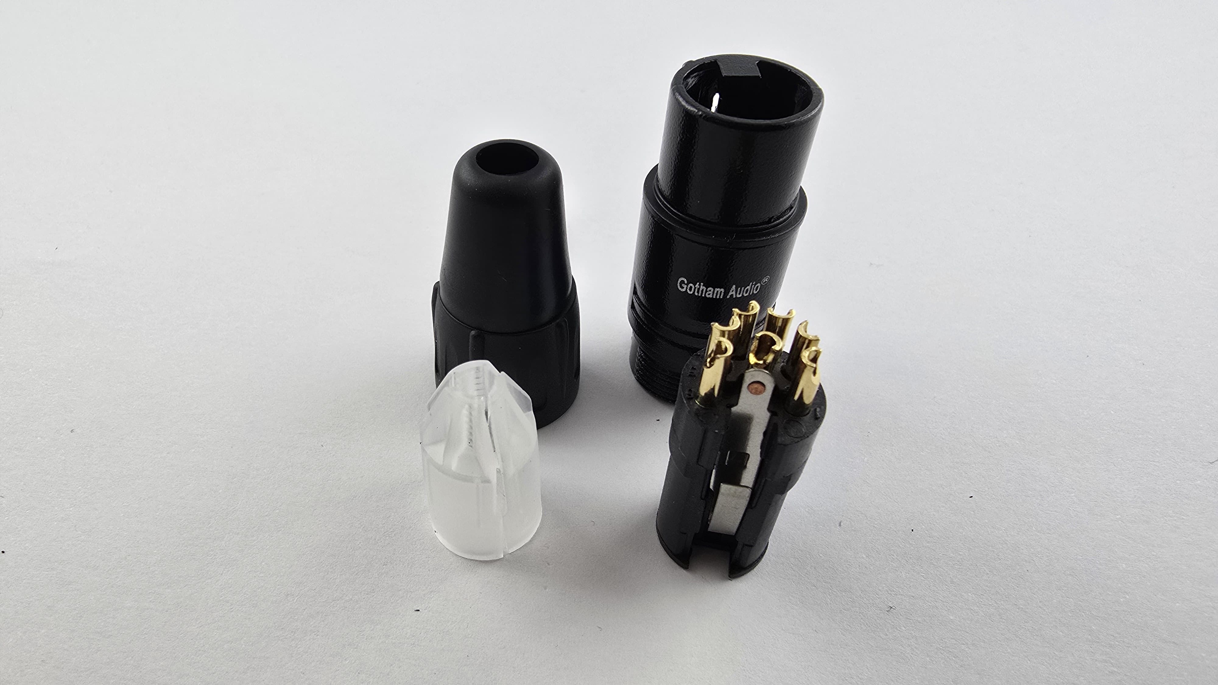 | GCXLR5MBL | GC-XLR-5 Male 1BK Gold Plated XLR 5 Pin male Connector. Gold plated contacts Black surface. Full metal boddy fits cables up to 9.0mm Ø |