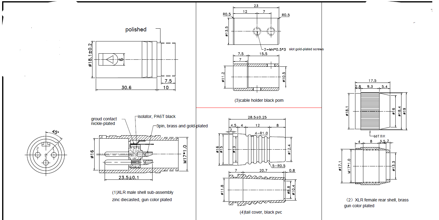 XLR Button: gold plated